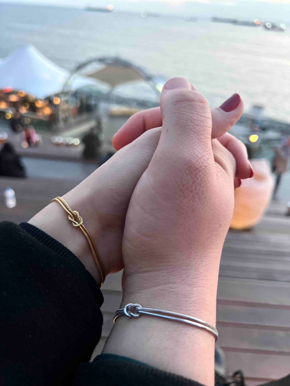 Sevgi Düğümü Bilekliği, iki kalbin birbirine olan bağlılığını simgeleyen özel tasarımıyla hem şık hem anlam dolu bir aksesuardır. Günlük kombinlerinize zarif bir ışıltı katar.