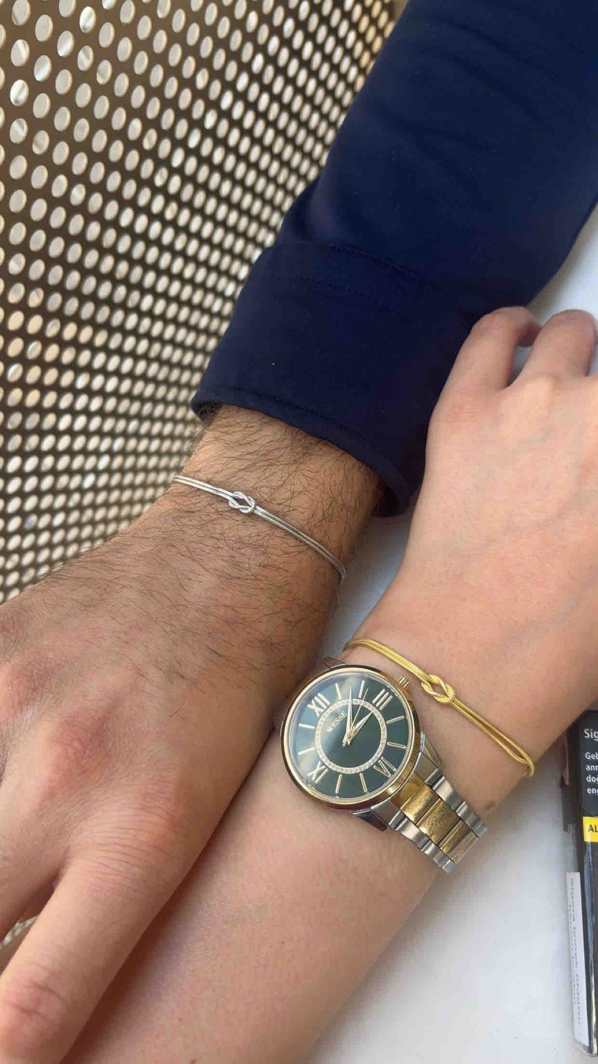 Birlikteliğinizi temsil eden zarif düğüm detayı, asla çözülmeyen sevgiyi simgeler. Her baktığınızda anlamı hatırlatır, her taktığınızda hissettirir.